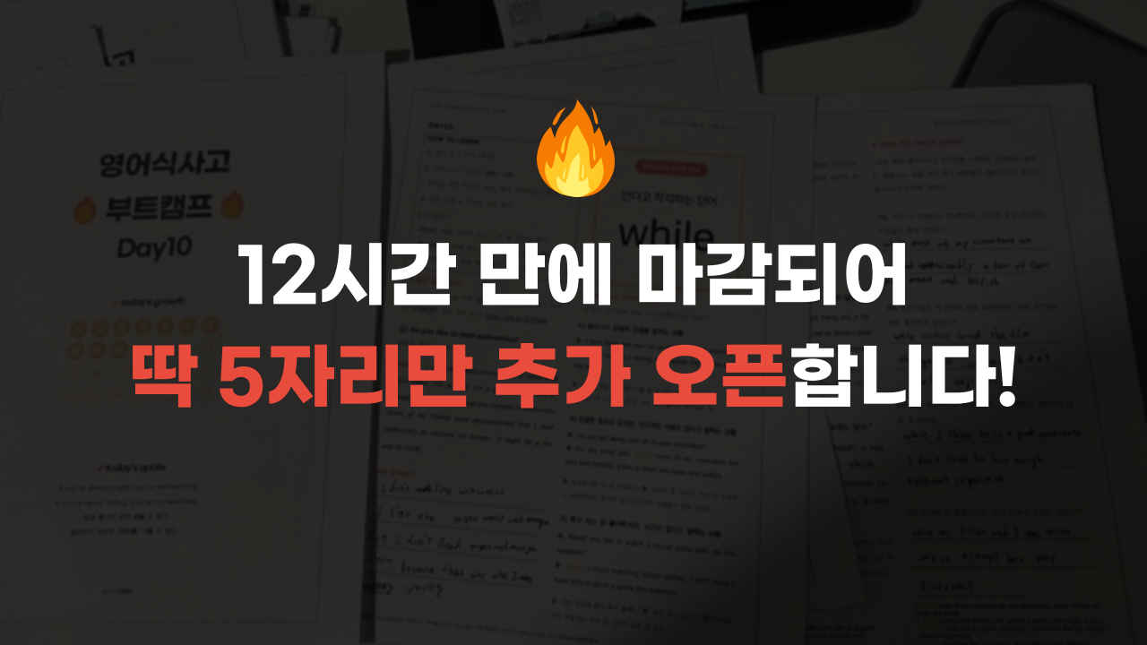 κ·Έλ°λ° λ± 5μ리, μΆκ° μ€νλ©λλ€. μ΄ 5μλ¦¬κ° λ§μ§λ§μ΄μμ. μ§κΈ μλ¦¬κ° μμ λ μ μ²νμΈμ!